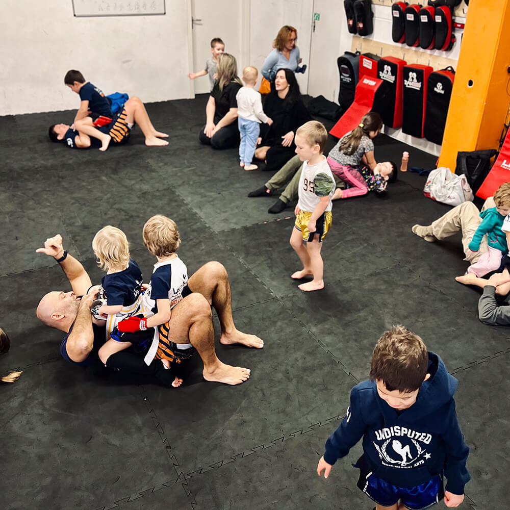 Mit unserem Schnupperkurs für Kindergartenkinder von 3–6 Jahren geben wir Kindern bereits in diesem Alter die Möglichkeit, die Welt des Kampfsports kennenzulernen. Gemeinsam mit einer vertrauten Bezugsperson (z. B. Mama, Papa, Oma, Opa, Tante oder Schwester) entdeckt das Kind spielerisch erste Elemente aus verschiedenen Kampfsportarten. Ohne Zwang, dafür mit ganz viel Spaß!